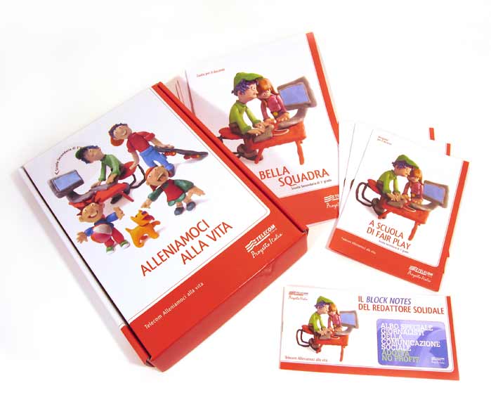Il progetto “Alleniamoci alla vita”, che fa parte di Telecom Progetto Italia, è rivolto alle scuole e propone una soluzione per attività didattiche ogni anno rivolte ad un diverso obiettivo. Per conto dell’agenzia La Fabbrica abbiamo creato le illustrazioni, realizzate interamente in pongo, e abbiamo seguito la progettazione del materiale didattico.